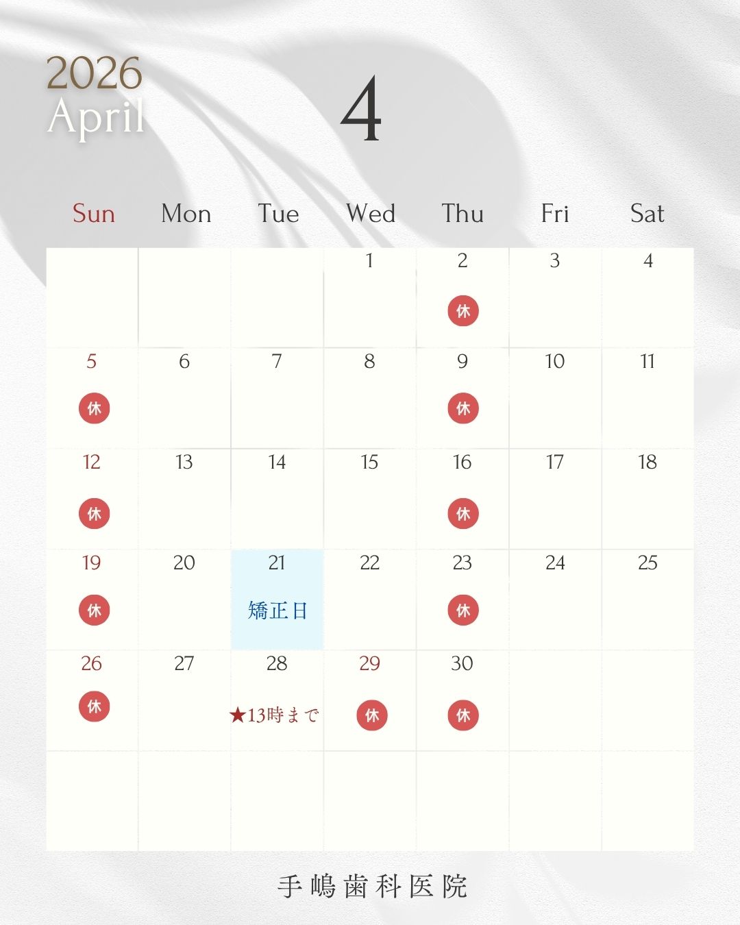 ※祝日のある週は木曜日診療いたします